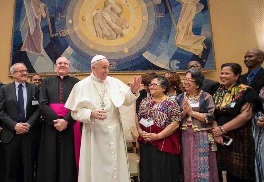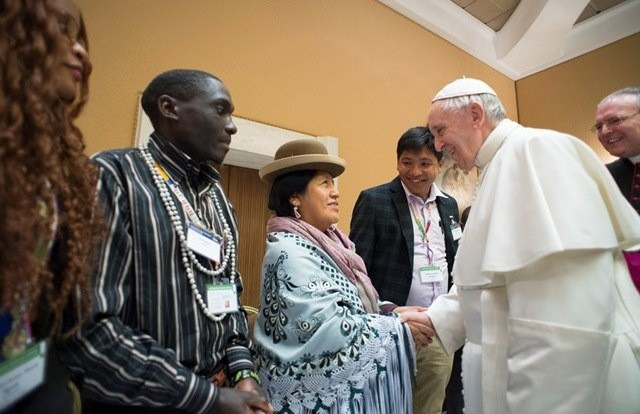 Ferenc pápa egyenként köszöntötte az őslakosok képviselőit, akik arról tanácskoztak, miként lehet népeiket jobban bevonni a gazdasági életbe. A lényegi kérdés a pápa meglátása szerint az, hogyan lehet összeegyeztetni a gazdasági, szociális és kulturális fejlődéshez való jogot az őslakosok személyének és területeinek védelmével.