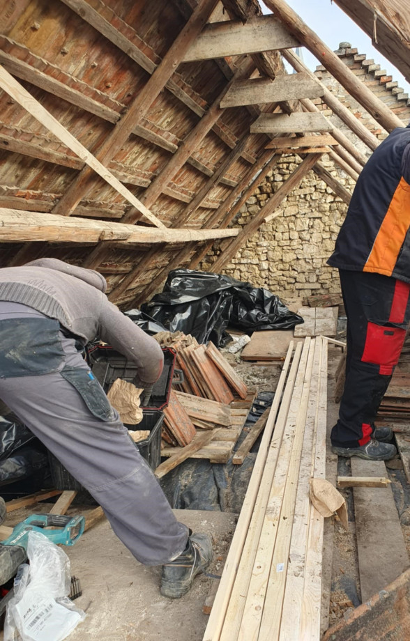 A Magyar Máltai Szeretetszolgálat „Tetőkommandója” vállalta, hogy díjtalanul elvégzi a szükséges munkálatokat. A Katolikus Karitász Lak6 programja biztosította a tető helyreállításához szükséges építőanyagokat, míg a Veszprém-Főegyházmegyei Karitász fedezte a szállítás költségeit.