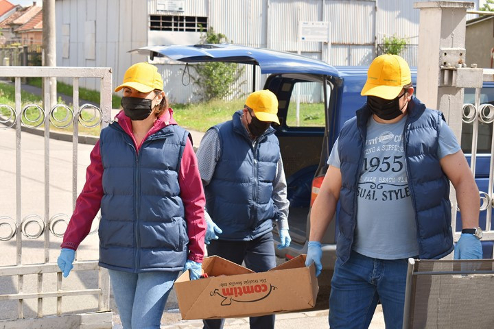 A biztonsági előírásokat szigorúan betartva a civilek az élelmiszercsomagokat a szervezeti egységek kapuihoz pakolták le – hiszen a bentlakásos intézményekbe való belépés a látogatók számára jelenleg tilos –, az alkalmazottak onnan vették fel és vitték be az adományokat a központba.