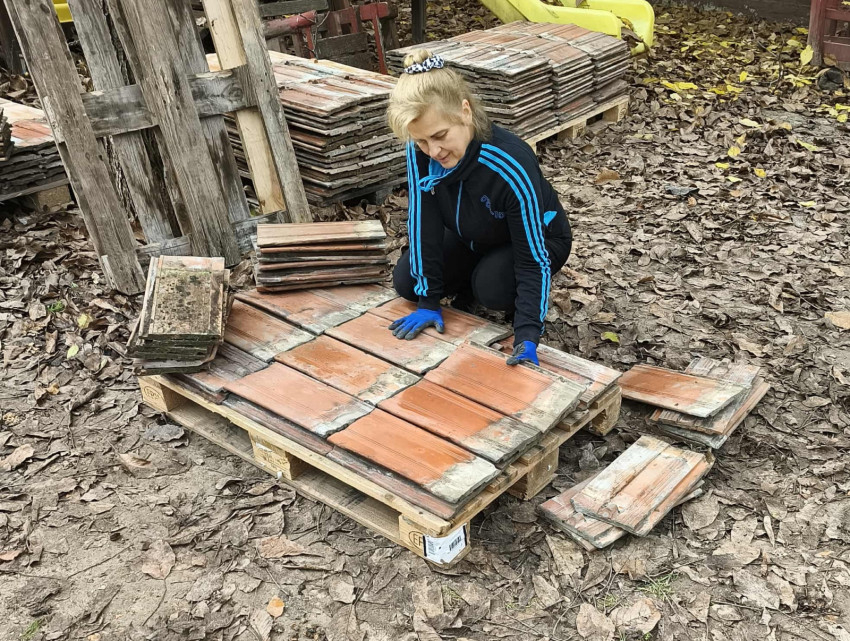 Az akció résztvevői a megyeszékhely Gyermeklánc Óvodája felújítás alatt álló épületének tetejéről származó Tatai tetőcserepet válogatták és hordták egybe.