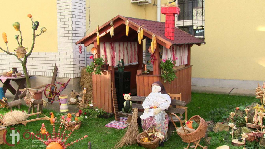 A családok és a gyerekek folyamatosan gyűjtötték az ősz kincseit, melyekből idén egy falusi udvart és környékét jelenítették meg; az ihletet a magyar népmesék adták.