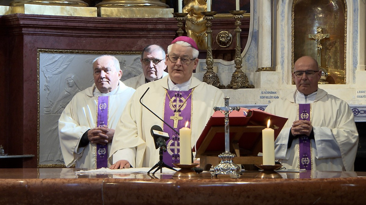 A szentmise homíliájában a főpásztor arról szólt, hogy a farizeus és vámos történetével Jézus két embert állít elénk példabeszédében, hogy mi is szembenézzünk önmagunkkal, milyen kapcsolatban vagyunk Istennel, hogyan éljük meg hitünket az Úr szolgálatában. A nagyböjt arra hív minket, hogy újuljunk meg gondolkodásunkban, cselekedeteinkben. Tudjuk a szentgyónásunk által is, hogy miben kell változnunk, mit kellene elhagynunk. A változás útja az imádság, a böjtölés és a jó cselekedetek útja, amely komoly áldozatokkal jár. De így tudjuk kifejezni Isten iránti szeretetünket, az Egyház iránti hűségünket. Ahhoz, hogy kikerüljük a csapdákat életünkben, Krisztusra kell tekintenünk.