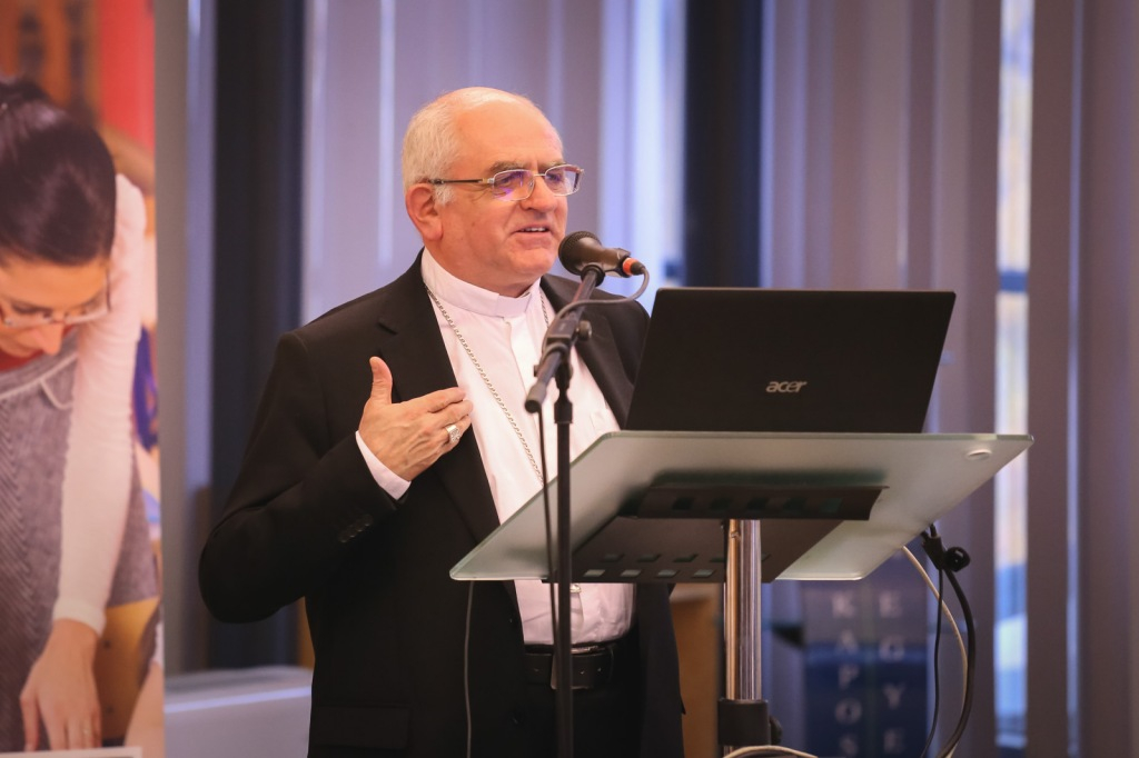 Néhány gondolatot osztanék meg abból a levélből, melyet a Szentatya az egész világra szétküldött – folytatta a püspök –: „Testvéreim, ne csak szóval szeressünk, hanem tettel és igazsággal is”, idézi Jakab apostol levelét a pápa. Hiába beszélünk a segítségadásról, ha ez nem mutatkozik meg cselekedeteinkben. Örülök, hogy ez a szakkollégium konkrét tettekben megnyilvánuló szeretet. „A szegények evangéliumi jogon tartoznak az Egyházhoz.” Bárcsak megszívlelné az Egyház Ferenc pápa ezen gondolatát, bárcsak tényleg merne közel menni, személyesen találkozni a szenvedőkkel, szegényekkel, rászorulókkal. Ha így közelítünk és nemcsak programokat szervezünk, hanem személyes találkozásra törekszünk, akkor a szeretet civilizációja fog növekedni az intézményekben, a szakkollégiumban és az Egyházban is.
