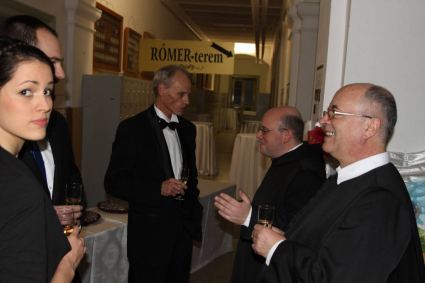 A bál védnöke, Sárai-Szabó Kelemen OSB konventuális perjel, az iskolát fenntartó Szent Mór Bencés Perjelség tavaly megválasztott elöljárója úgy fogalmazott, az igazi közösség együtt dolgozik, együtt szenved és együtt is örül. Hangsúlyozta, nagy öröm, hogy a jelenlegi és volt diákokhoz ilyen közel áll a bencés lelkiség. Az elmúlt év két jubileumára utalva – Czuczor Gergely bencés szerzetes, költő, akadémikus halálának 150. évfordulója, valamint a győri bencés templom felszentelésének 375. évfordulója – a perjel kiemelte a tavaly decemberi harangszentelési ünnepséget, és köszönetet mondott mindenkinek, aki hozzájárult, hogy száz évvel a harangok elhurcolása után hat új harang kerülhetett a bencés templom tornyaiba.