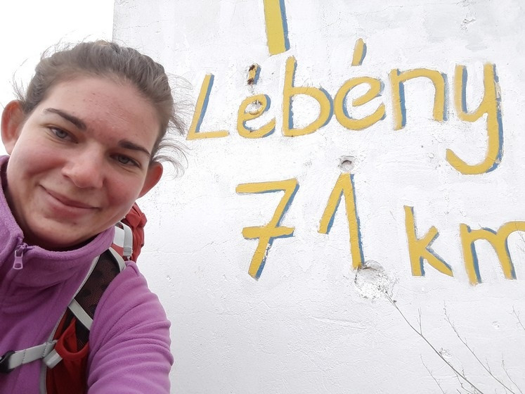 Zsófia a következő év áprilisában végigjárta a magyar Szent Jakab-utat is, ami hivatalosan Lébényig tart. „Én tovább szerettem volna menni, Wolfsthalig, ahol az út becsatlakozik a nemzetközi El Caminóba (onnan pedig egészen az óceánig ki van jelölve az út Ausztrián, Franciaországon és Spanyolországon át). Kifogtam a legváltozatosabb tavaszi időjárást, így amikor több óra gyaloglás után a hóviharban, az esőkabát ellenére bőrig ázva, elvesztettem a jeleket, nem sokáig hezitáltam, hogy kockáztassam az eltévedést a korai sötétedésben vagy bestoppoljak Tatára. Ezek a dolgok nem igazán számítanak – az sem, ha esőben kell gyalogolni, az sem, ha az út nem minden méterét a két lábadon teszed meg. Először ezek fontosnak tűntek, aztán rájöttem, hogy az igazi zarándokút belül zajlik, nem kívül. A gyaloglást végül itt is két nappal a tervezett előtt, Máriakálnokon hagytam abba, hirtelen, egyik pillanatban még a másnapi szállásomat intéztem Pozsonyban, a másikban pedig már Budapest fele robogtam a vonattal, két óra alatt visszatérve oda, ahonnan kilenc nappal korábban elindultam; éjjel pedig már Marosvásárhelyen szálltam le a buszról, hogy másnap átvehessem a régen várt egyetemi diplomámat. Érdekesség, hogy pont azon a napon fejeztem be a magyar Szent Jakab-utat, amelyiken egy évvel előtte eldöntöttem, hogy elindulok a spanyol szakaszra. Bezárult a kör, de igazából a zarándokútnak nincs vége.”