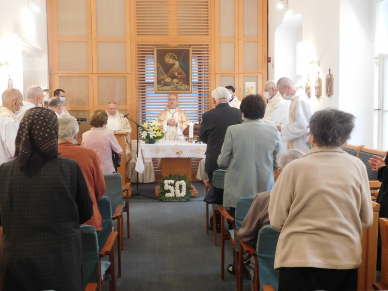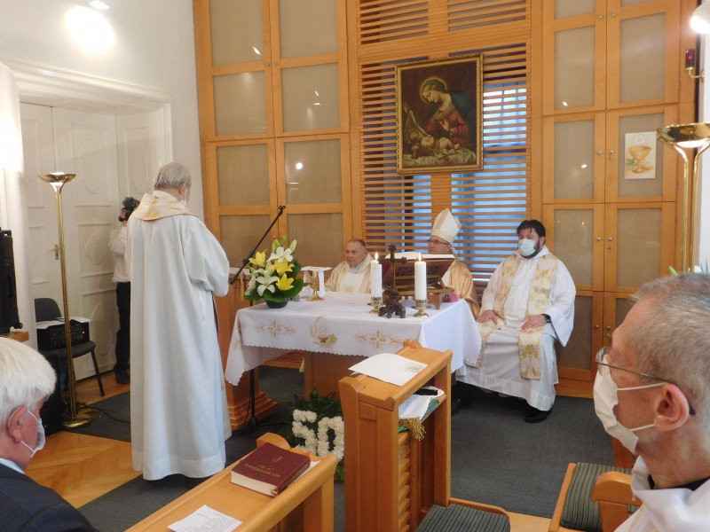 A szertartáson részt vettek az otthonban élő nyugalmazott papok és más ott lakók, valamint az intézmény dolgozói.