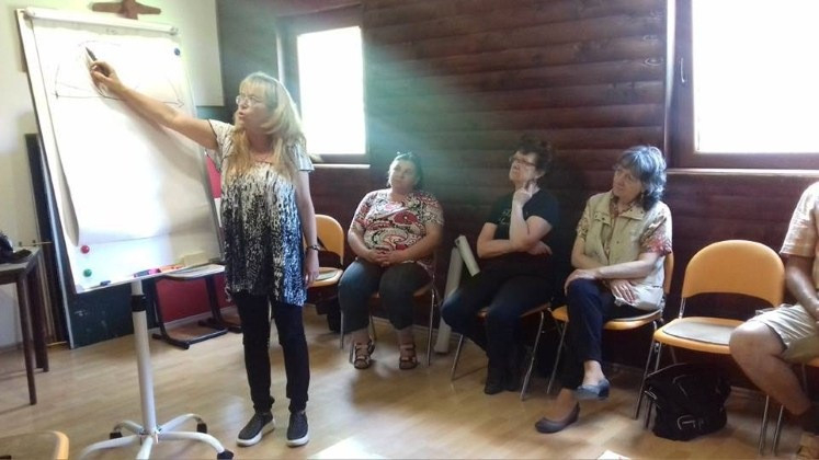 A délutáni előadást, beszélgetést Péter Edit székelyudvarhelyi pszichológus vezette. Az ő irányításával a résztvevők az „otthon-itthon” kérdését fejtegették, azt, hogy hogyan élhetik, élik meg a lassan erejüket vesztő idősek az öregkort a szeretteik, családjaik körében, valamint az öregotthonokban. A pszichológus hangsúlyozta, hogy az öregedés életszakaszára már aktív korban, azaz a produktív életfázisban készülni kell. Tudni kell elengedni a tevékeny időt, és tudni kell elfogadni az öregkort, tudni kell viselni a ráncokat.