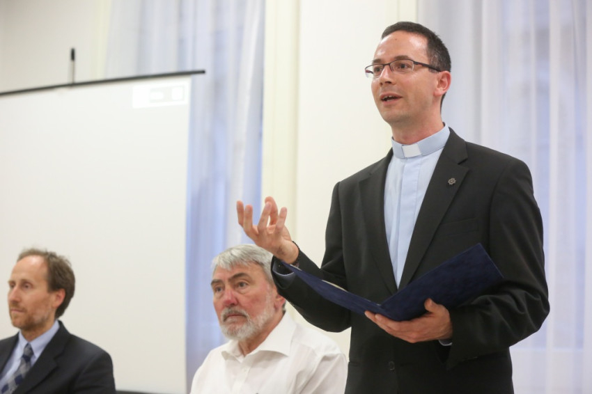 Görbe László piarista szerzetes, a Szent Margit Gimnázium igazgatója Öveges József életpályáját foglalta össze. Rámutatott: néhai rendtársa küldetésének megértéséhez azt a kort kell látni, amelyben hivatása gyökerezett: ez a századelő technikai újításainak kora, melyben megszületett a rádió, a televízió, ekkor vált hétköznapi jelenséggé az elektromosság.