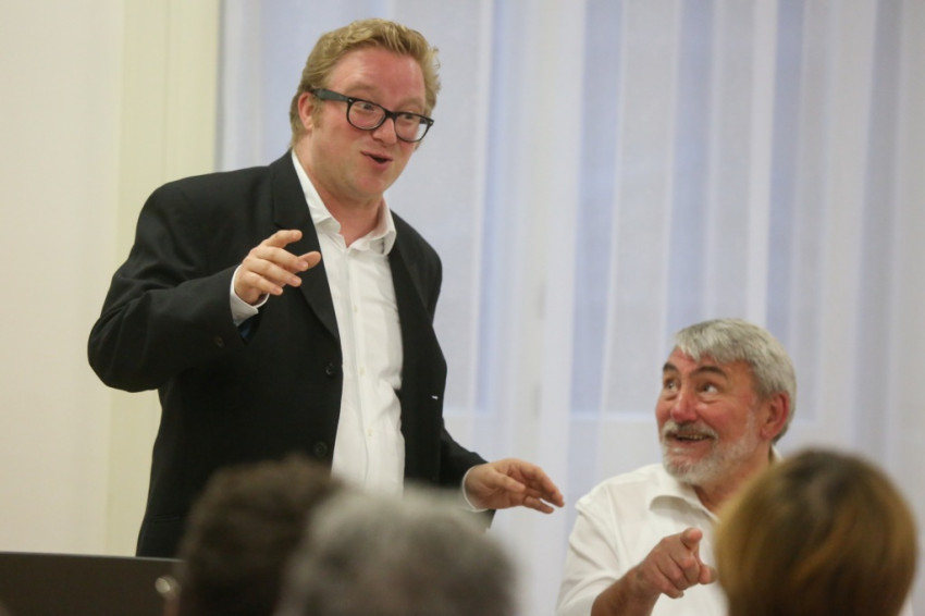 Az előadásokat követően Koltai András, a Piarista Rend Magyar Tartománya Központi Levéltára vezetője, Woynarovich Ferenc egykori piarista diák, az MTA Wigner Fizikai Kutatóközpont munkatársa és Borbás Péter muzeológus (Piarista Múzeum), a kiállítás kurátora tartottak tárlatvezetést.