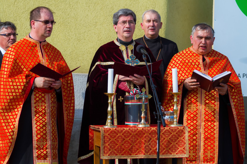 Az alapkövet Kruppa Tamás főhelynök és Seszták István pasztorális helynök atya áldotta meg. Az eseményen műsorukkal közreműködtek az Angyalkert Görögkatolikus Óvoda és a Szent György Görögkatolikus Általános Iskola diákjai. Jelen volt Leleszi Tibor, Kisvárda polgármestere; Seszták Oszkár, a megyei közgyűlés elnöke és Seszták Miklós országggyűlési képviselő, a KDNP alelnöke.