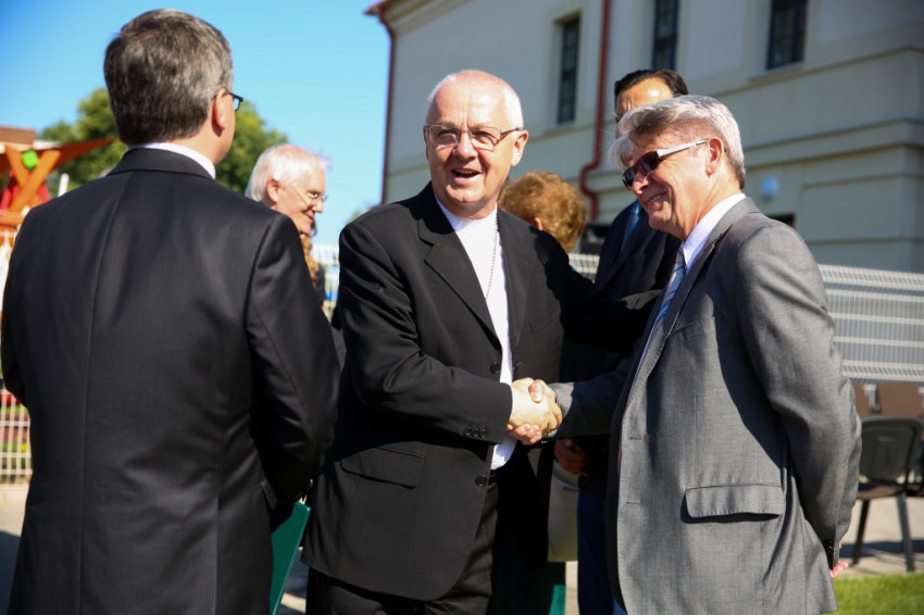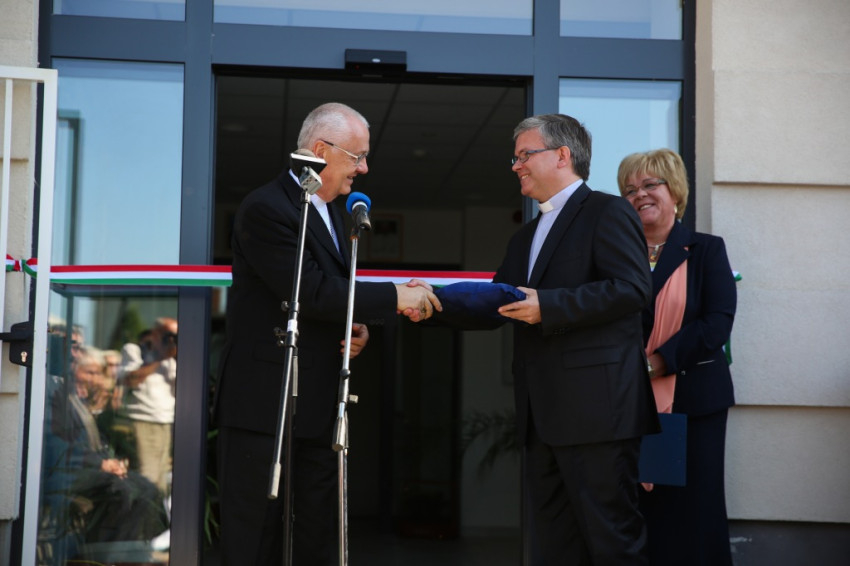 Az ötletgazda Kasza Lajos vállalkozó elmesélte, hogyan született az ötlet, a családi napközitől hogyan jutottak el az óvoda alapításáig, az épület és az intézmény működtetésének az egri érsekségre bízásáig. Ternyák Csaba, miután átvette az óvoda kulcsát Kasza Lajostól, egy fontos és a nap folyamán még többször előkerülő gondolatot fogalmazott meg. Amikor a város első katolikus óvodája megnyílik, annak a reménye születik meg vele, hogy ha már a legkisebbek nevelése is keresztény szellemben folyhat, és a gyerekek ebben az intézményben olyan spirituális útravalót kaphatnak, amit a szüleiktől manapság már egyre ritkábban, abban lehet bízni, hogy boldogabb emberek lesznek, mint ha ez elmaradna. Kérdés azonban – mint később egyik-másik beszédben felvetődött –, mit lehet tenni annak érdekében, hogy a „kétfelé nevelést”, a gyerekek összezavarodását elkerüljék.