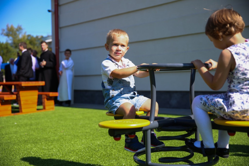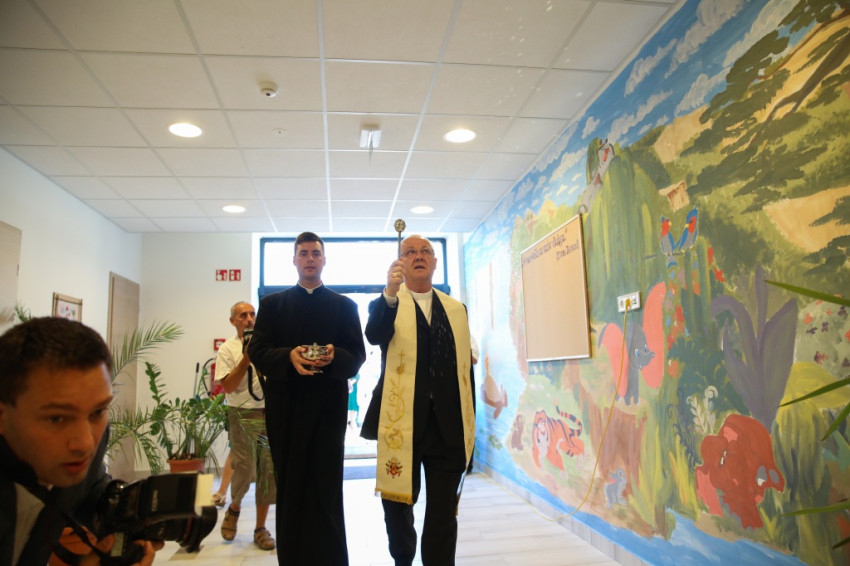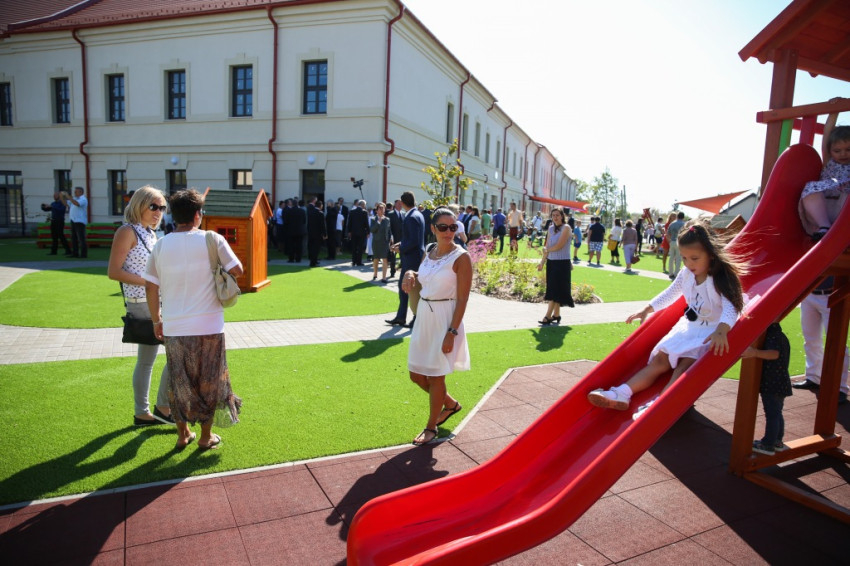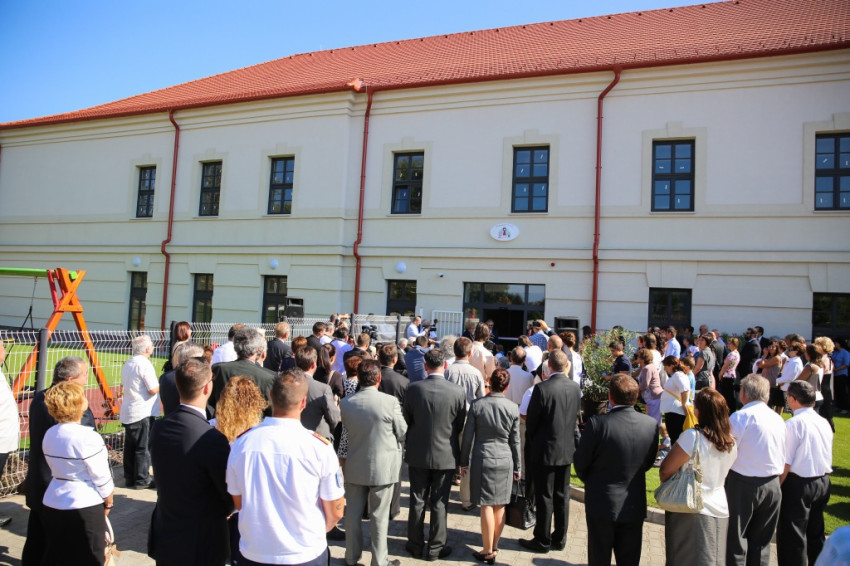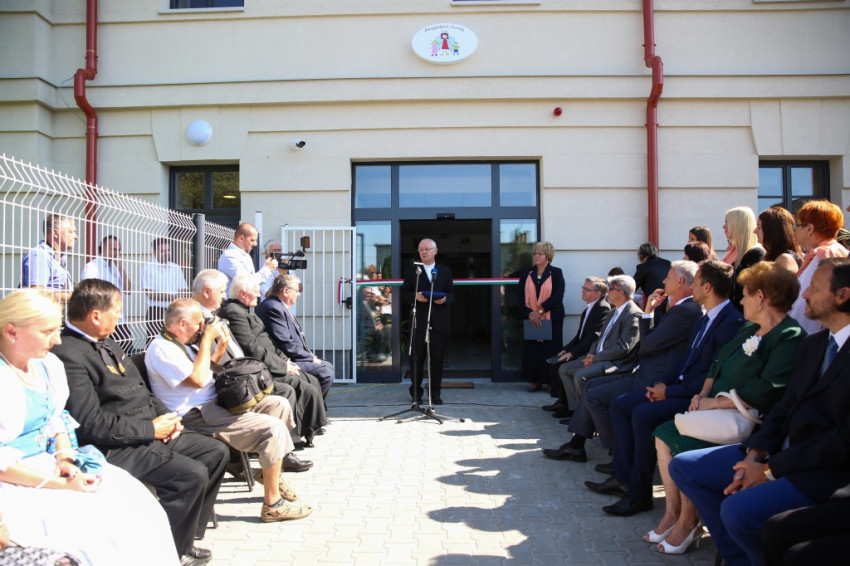 Az ünneplés tízkor, az egykori huszárkaszárnya korábban romos épületéből kialakított Angyalkert óvodában kezdődött, amelyet az utolsó pillanatig díszítettek az óvónők. Az új intézmény egy hete nyílt meg, lett hetvenöt gyermek második otthona. A nagycsoportosok már verssel is készültek mára. „Olyan ez az óvoda, mint egy mesepalota” – szavalták lelkesen, és mindenki igazat adott nekik. Belül ugyanis csupa szín az új óvoda, akkora játszótere van, hogy egy egész kisváros gyermekei elég elfoglaltságot találnának benne, és még sószobája is lesz.