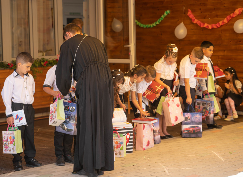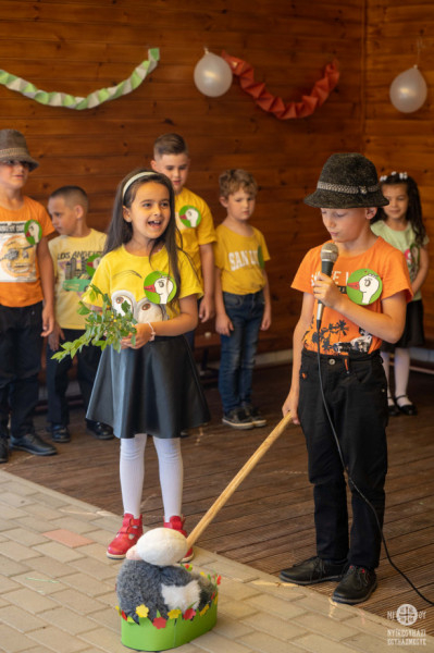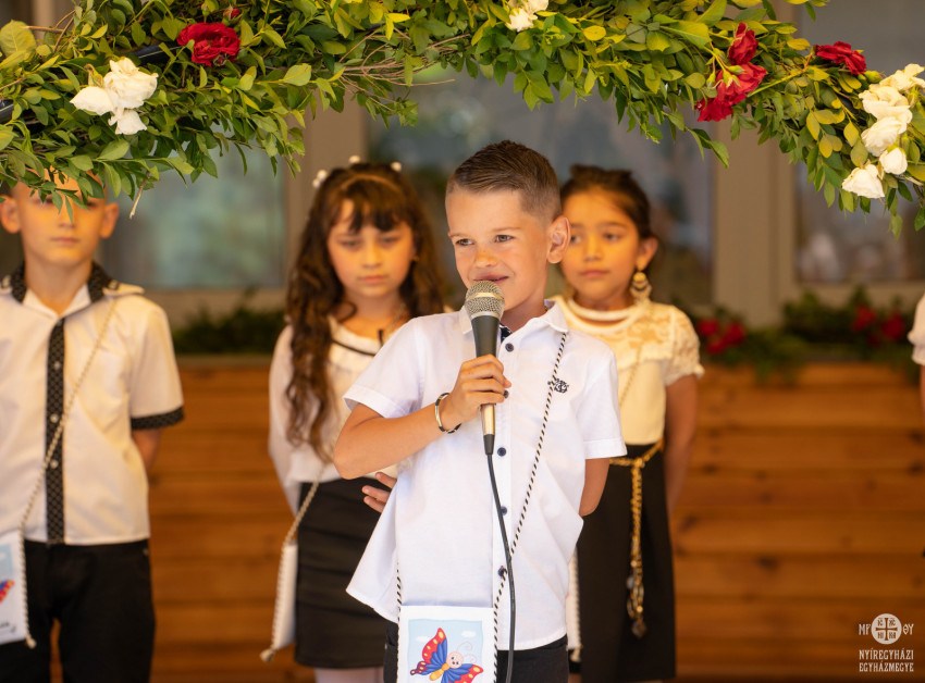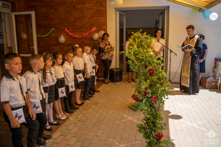 A gyermekek műsora után Kanyó Árpád atya, az intézmény lelki igazgatója megáldotta az iskolába készülő gyermekeket.