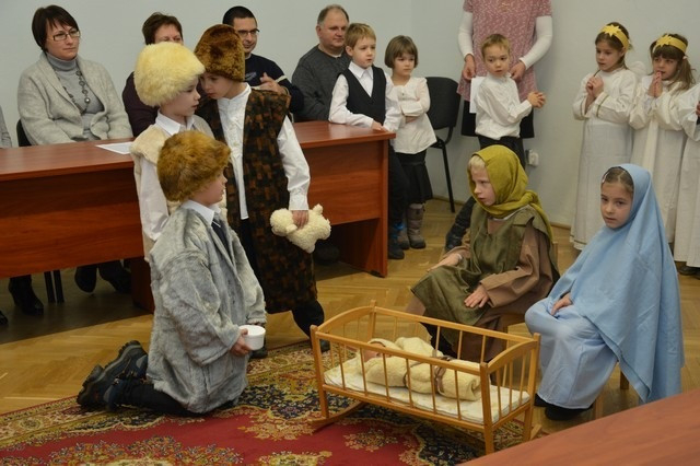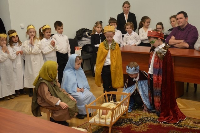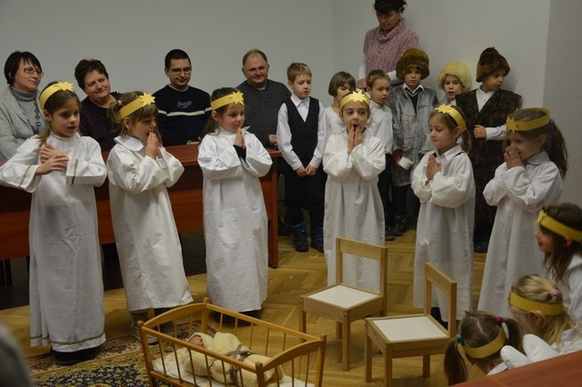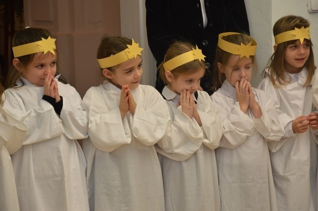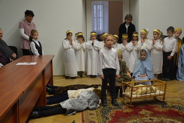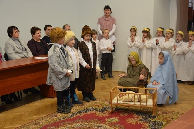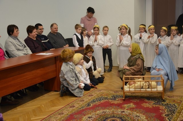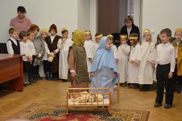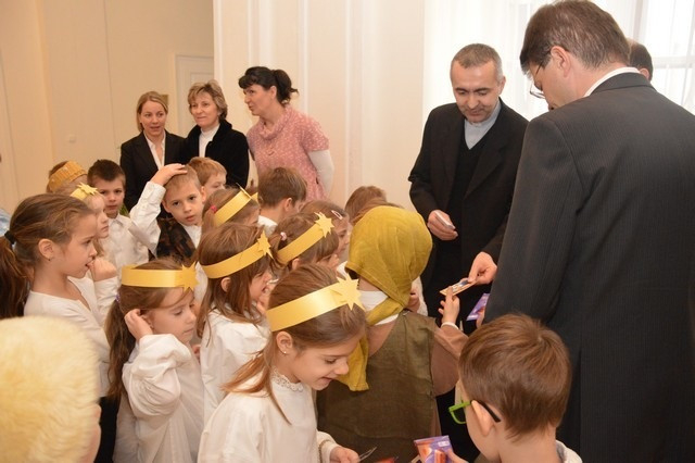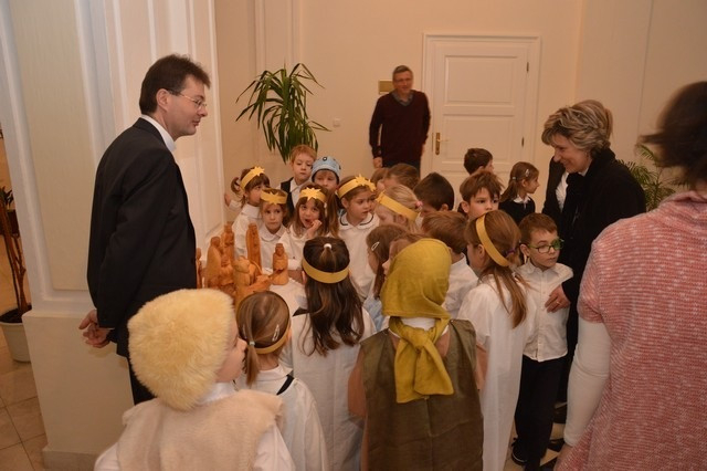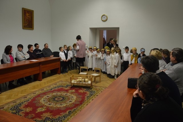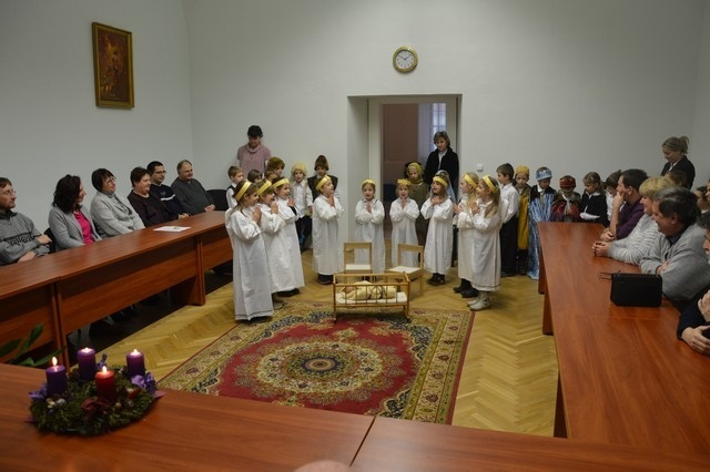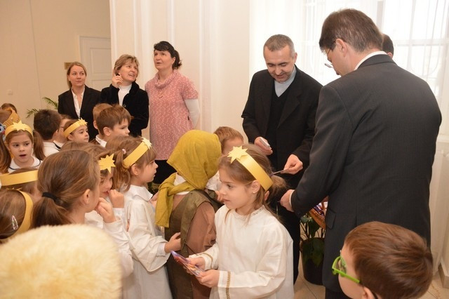 A Szombathelyi Egyházmegye Brenner János Nevelési Központja óvodájának Nap csoportja lépett fel a püspöki palotában. A műsor végén a hivatal munkatársai apró ajándékkal kedveskedtek a fellépőknek.