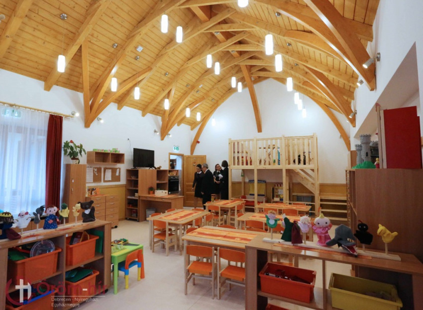 Tárkányiné Budai Éva visszaemlékezett a hat hónappal ezelőtt történt alapkőletételre, majd örömének adott hangot, amikor elmondta, a Zsigmond László Ybl-díjas építész által tervezett épület mindössze fél év alatt épült meg. A csoportszobák több méteres belmagassága, a nagy üvegfelületeken keresztül beáramló fény és a tágas belső terek különleges egységet alkotnak. Az épület impozáns megjelenésével, organikus stílusjegyeivel a városközpont egyik látványossága lett.