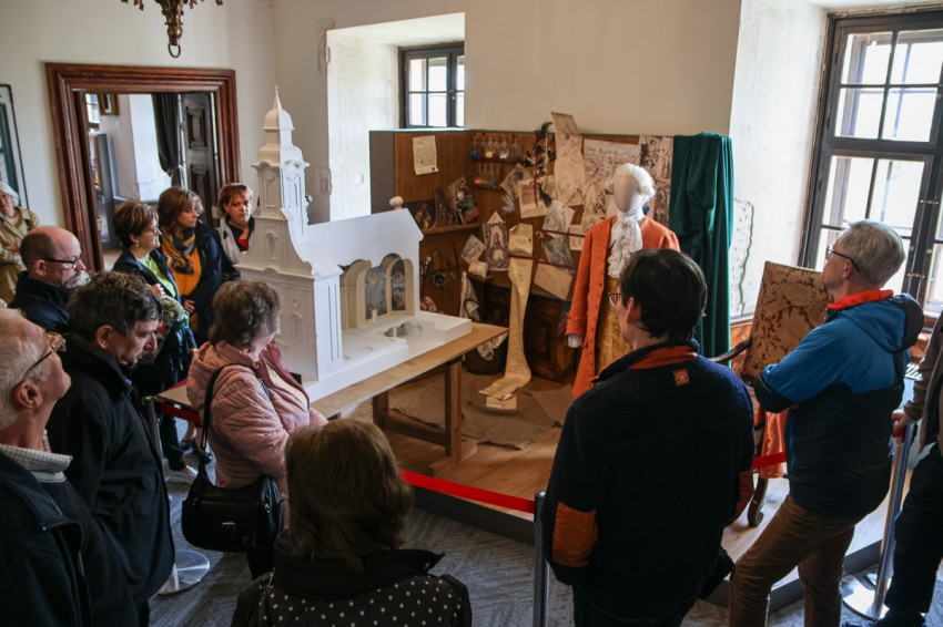 A program a megújult püspöki palotában folytatódott, amely – mint a kiállítás kurátorai, Nagy Veronika és Gaylhoffer-Kovács Gábor művészettörténészek elmondták – nemcsak a magyarországi barokk építészet kiemelkedő emléke, hanem építtetőjén keresztül igazi barokk történetet mesél el az ország újjászületésének nagy korszakából. A tárlatvezetők nagy szakmai tudással és érdekfeszítő, humoros előadásmódban mesélték el a palota valóban izgalmas átépítésein túl Padányi Biró Márton püspök felemelkedésének és mellőzésének történetét. A kiállítás a püspök személyes sorsán keresztül mutatja be a palota múltját, a barokk korszak világképét, a sümegi mindennapokat és a főpásztor karrierjét is meghatározó európai politikát.