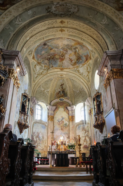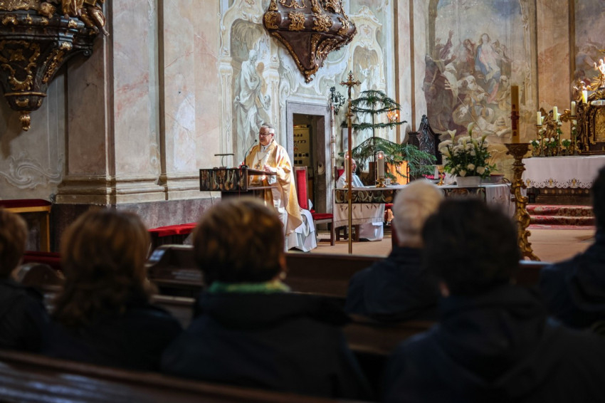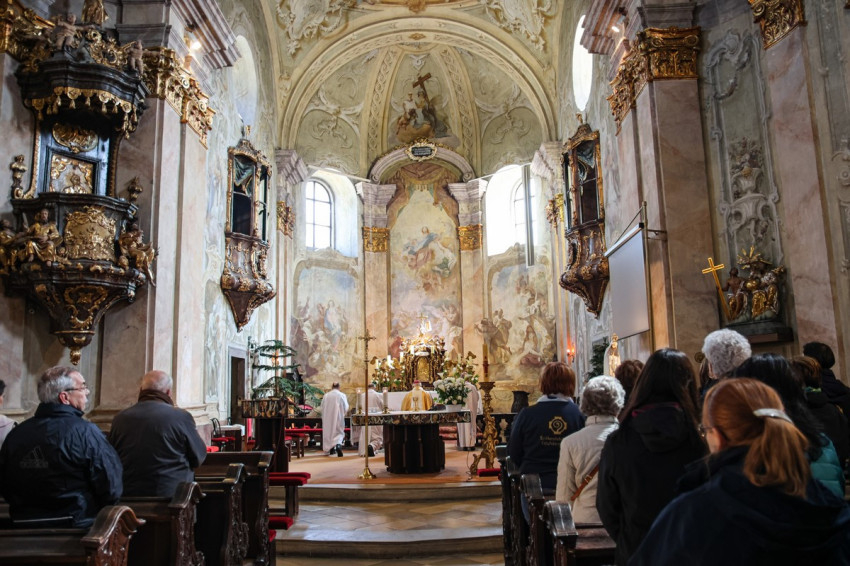 Szentmisén vettek részt, majd megcsodálták a magyarországi falfestészet egyik legnagyszerűbb alkotását magába foglaló Urunk mennybemenetele-templomot, Franz Anton Maulbertsch freskóival. Végigjárták az egykori püspöki palotát, ahol a tudományok és a művészetek pártfogójaként tisztelt mecénás püspök, Padányi Biró Márton és a barátjaként nagy becsben tartott Maulbertsch festőművész is élt és alkotott.