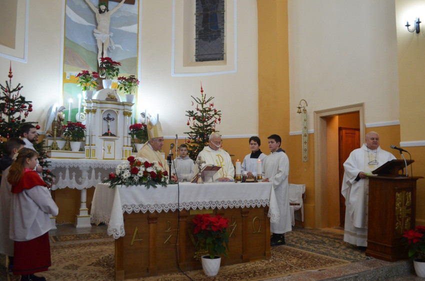 A hívek nevében Szabó Gyula plébános köszöntötte Pál József Csaba püspököt. Mint fogalmazott: mindig nagy öröm, ha a közösség az egyházmegye főpásztorával ünnepelheti az eucharisztiát. Különösen nagy öröm, hogy megáldja a hívek áldozatos adománya és munkája, valamint a polgármesteri hivatal segítsége révén újjávarázsolt plébániát.