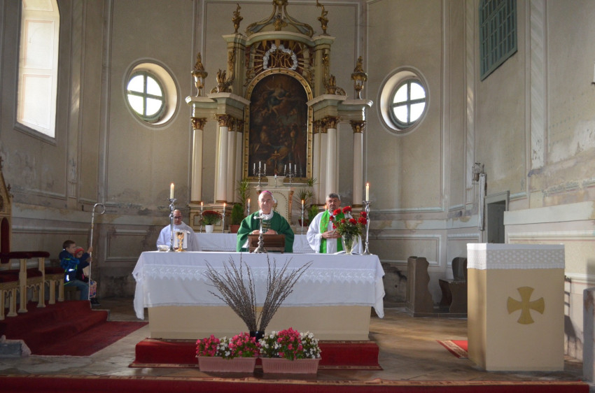 Délben a temesújfalui plébániához tartozó Temesfüves római katolikus templomában mutatott be szentmisét a megyéspüspök.