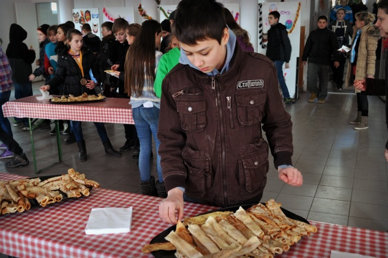 A Kovács Béla Általános Iskola ehhez a népszokáshoz csatlakozva rendezte meg palacsintafutását, amelynek célja a Szemem Fénye Alapítvány által támogatott rászoruló gyermekek segítése volt. A templomtéren tartott ünnepség után mindenki átvonult az iskola aulájába, ahol az intézmény ötszáz tanulóját egy-egy palacsintával lepte meg a Szemem Fénye Alapítvány, így köszönve meg a támogatást.