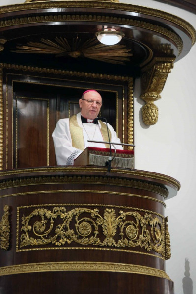 Palánki Ferenc megyéspüspök bevezető gondolataiban a kijelölt evangéliumi szakaszra utalva kifejtette, az Úr hatalmas jobbjával, erős karjával védelmezi azokat is, akik nem ismerték föl szeretetét, akik visszautasították jóságát. Szomorú tapasztalatunk, hogy milyen sok ellenségeskedés, vita, torzsalkodás van az istenhívő emberek között is. Pedig a mennyország kapujában nem azt fogják megkérdezni, életünk során hányszor volt igazunk, hanem azt, hogy volt-e bennünk szeretet, irgalom. „Ki nem vigasztal meg, mikor megbántottad, nem is szeret” – Isten szeret így bennünket. Megbántottuk őt a bűneinkkel, és Jézus Krisztusban megvigasztalt bennünket. Ez a feltétel nélküli szeretet, amely szabad utat ad az egyéneknek az Atyához.