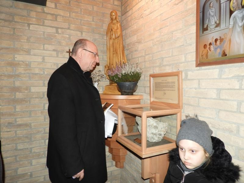 A szentmise után a főpásztor megtekintette a templomban látható, az Árpád-kori Szent György-templom régészeti feltárása során előkerült 800 éves szenteltvíztartót, majd a templom híveivel együtt szerény agapén et részt.