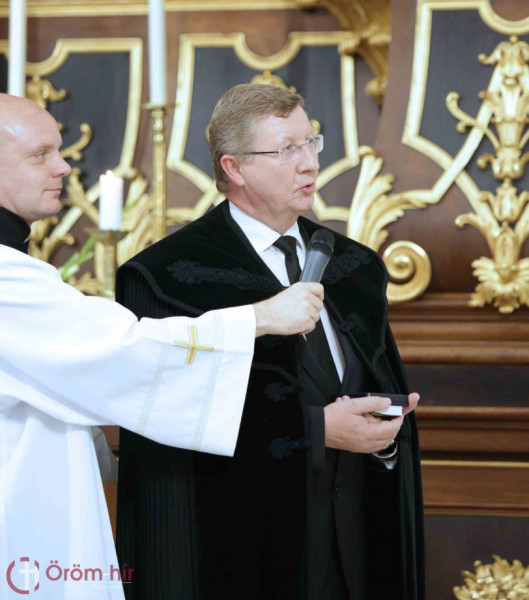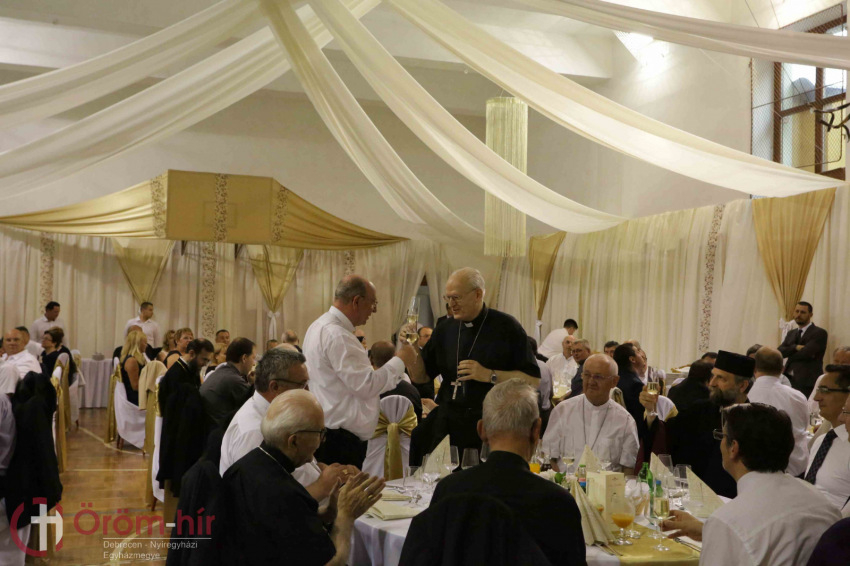 Felföldi László általános püspöki helynök az egyházmegye papságának nevében egy ezüstkelyhet adott át a jubilánsnak. Beszélt a kehely jelentéséről, amely a hitnek, a küldetésnek és a szeretet szenvedésének a kelyhe is. Jézus hálát adó áldásában azt mondta: „ez az új szövetség kelyhe”. A hit indulása Isten útján – tette hozzá a püspöki helynök. – A kehely a misszió, a küldtetés jelképe, amely csak akkor valóságos, ha benne van a szeretet szenvedése azokért is, akiket Isten ránk bízott. „Ez formálja a papi életed folyamán a krisztusi arcot!” – fogalmazott Felföldi László.