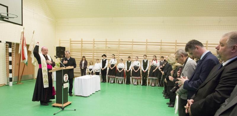 Dienes Béla igazgató köszöntőbeszédében kiemelte, az intézmény 2011 szeptemberében került a Debrecen-Nyíregyházi Egyházmegye fenntartásába, azóta két nagyobb beruházás is történt. 2013-ban a tetőteret bővítették, most pedig új tornateremmel gazdagodott az iskola, amelynek 110 millió forintos beruházási költségét a fenntartó biztosította.