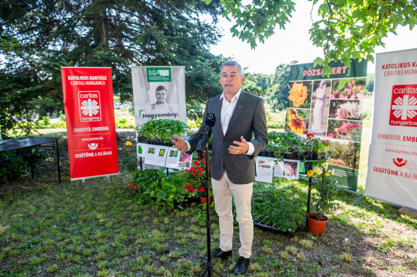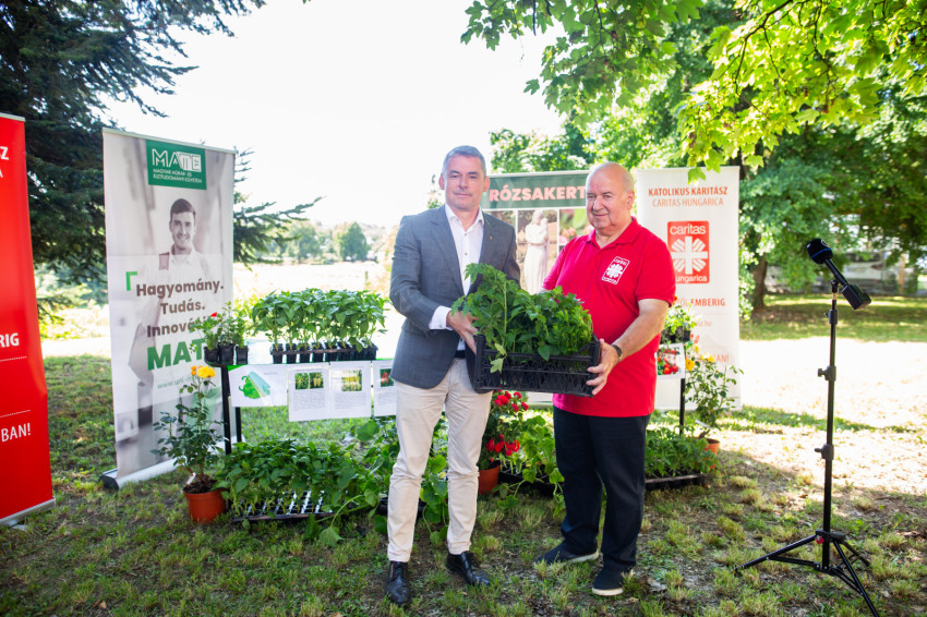 A Budatétényi Rózsakert Magyarország legnagyobb rózsagénbankja, valamint az ország egyik legszebb és legértékesebb, Márk Gergely gyűjtéséből született rózsakertje. A rozárium hétezer rózsája között tartották a Katolikus Karitász és a MATE részvételével a sajtótájékoztatót, melyen 10 500 cukkini-, paprika-, paradicsom-, uborka- és zellerpalántát adott át a MATE a Karitásznak.