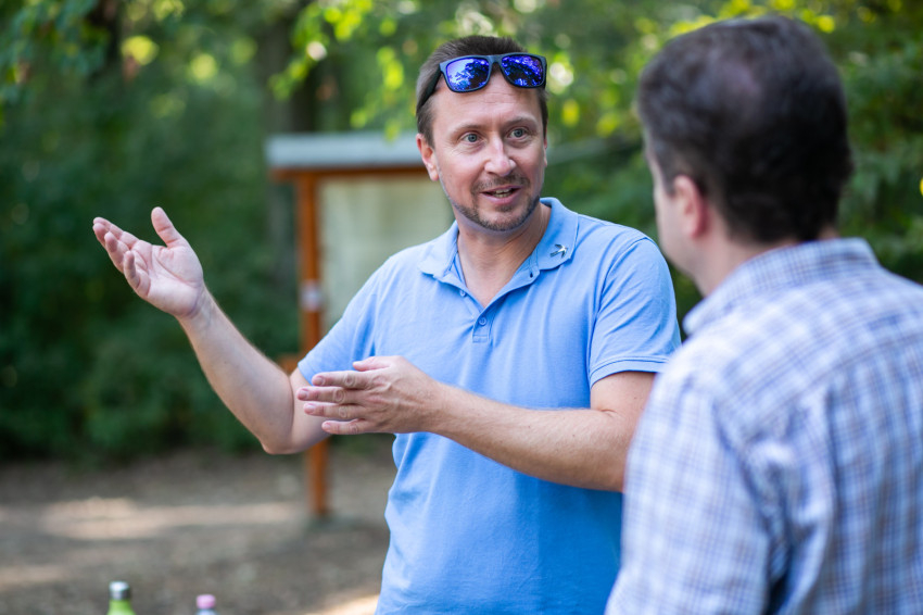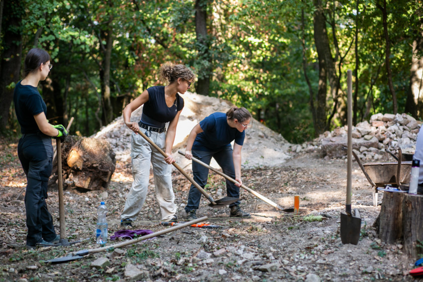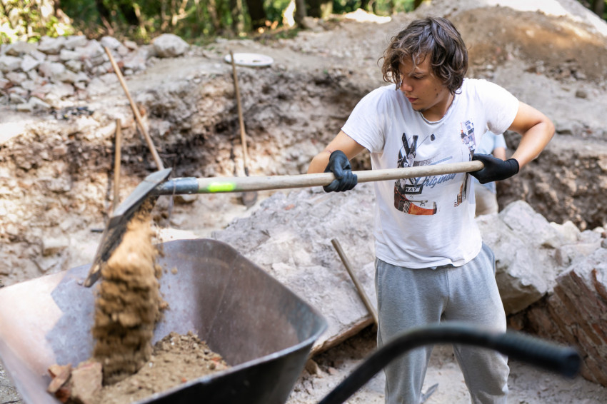 Az idén év elején fiatalon elhunyt ásatásvezető, Végh András nagy űrt hagyott maga után. Szerepét az egyetem részéről Papp Adrienn és Takács Ágoston vette át a terepen. Látogatásunk idején Takács Ágoston irányította a régészhallgatókat, őt kérdeztük az idei kéthetes kutatómunka eredményeiről. Elmondta, hogy most a templom hajójának északkeleti sarkát tárják fel, közvetlenül a szentély indításánál, az egykori diadalív környezetében.
