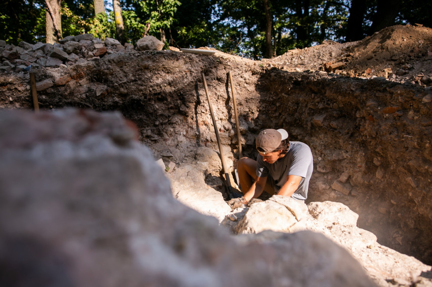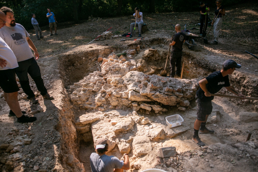 Az idei feltárás első hetében egy mintázatos padlótégla töredéke került elő, az egyik fa alól pedig egy madármotívumot ábrázoló, zöldpatinás pecsétgyűrű. Amíg ott jártunk, egy elszíneződött üvegdarab, a feltételezett ajtónyílás mellett pedig ismét egy nagyobb darab faragott kő „sarka” bukkant elő a gondosan, rétegenként haladó terepmunka során; talán egy mérműves ablak töredéke. A környéken, még az említett forrás közelében is sok az éremlelet, de szép számmal találtak textilplombákat is, ami az egykor itt zajló élénk kereskedelemre utal. A feliratos alapkő alól származó velencei aranydukát és a lábazathoz behintett pénzérmék azt mutatják, hogy nagyvonalú mecénásai lehettek az itteni pálos szerzeteseknek.