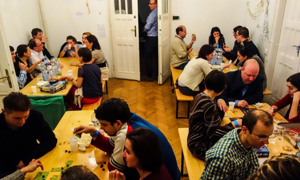 Hol is? Több mint egy éve rendezzük meg a TÁRSas Játék Est nevű eseményt. A közös önkéntesmegbeszéléseken szóba került az a kérdés, hogy itt, Budapesten kevés nyitott hely van, ahol keresztényként ismerkedni lehet. Sok szervezet létezik, ahol a már összeszokott társaság együtt van, de sokszor az a tapasztalat, hogy nehéz bevonódni egy kialakult közösségbe. Nálunk más a helyzet. A Panágia mottója is ezt sugallja. Sok idegen ember, akik nem ismerik egymást, levesznek egy társasjátékot a polcról, leülnek egy asztal köré, és együtt játszanak. Hogy miért jó ez? – tehetjük fel a kérdést. Azért, mert a környezet biztonságos. A Panágia elkötelezett keresztény jellege az, ami biztonságot nyújt.