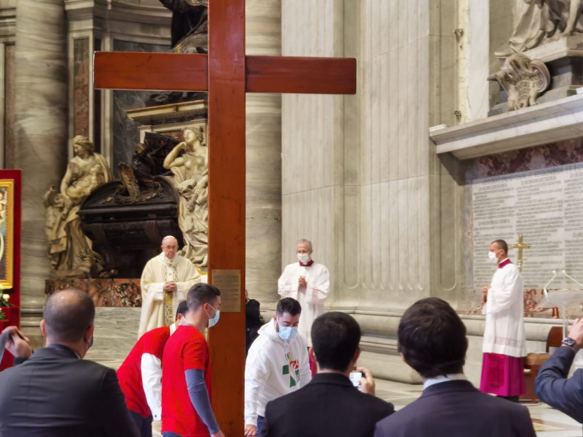 Krisztus király vasárnapján Ferenc pápa a Szent Péter-bazilikában bemutatott ünnepi szentmiséje keretében adták át a panamai fiatalok portugál társaiknak az IVT keresztjét és a Salus Populi Romani Szűz Mária-ikon másolatát.
