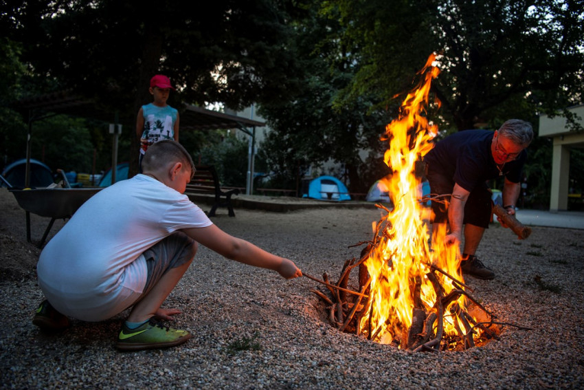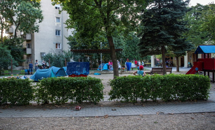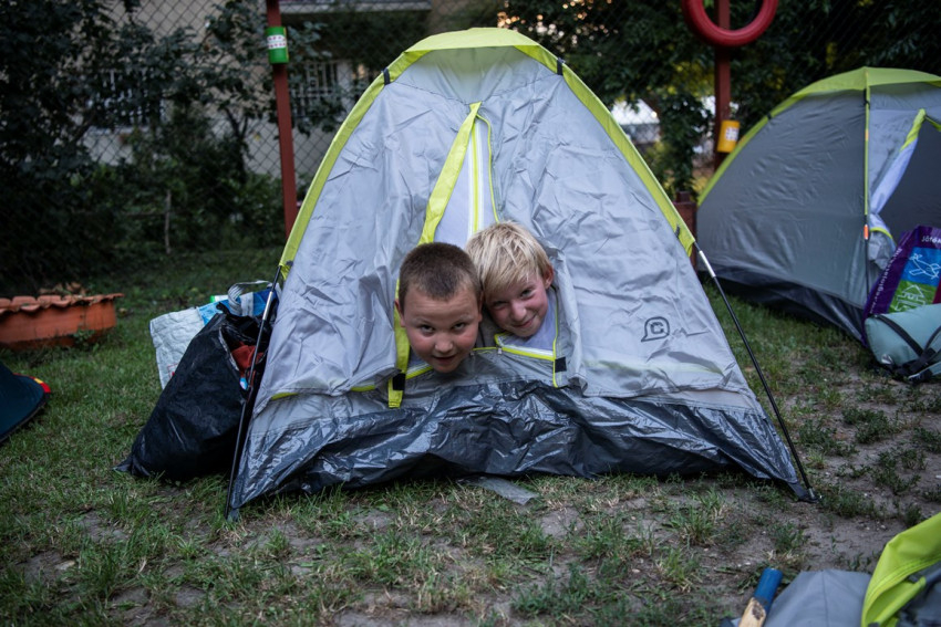 „Szerintem itt sokkal jobb, mert lehet, hogy az erdőben félnék egy kicsit” – így érvelt a játszótéren való sátrazás mellett a Máltai Szeretetszolgálat táborának egyik résztvevője.
