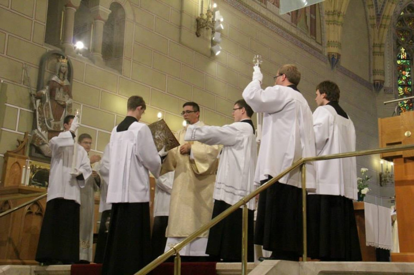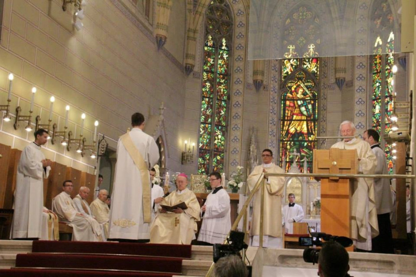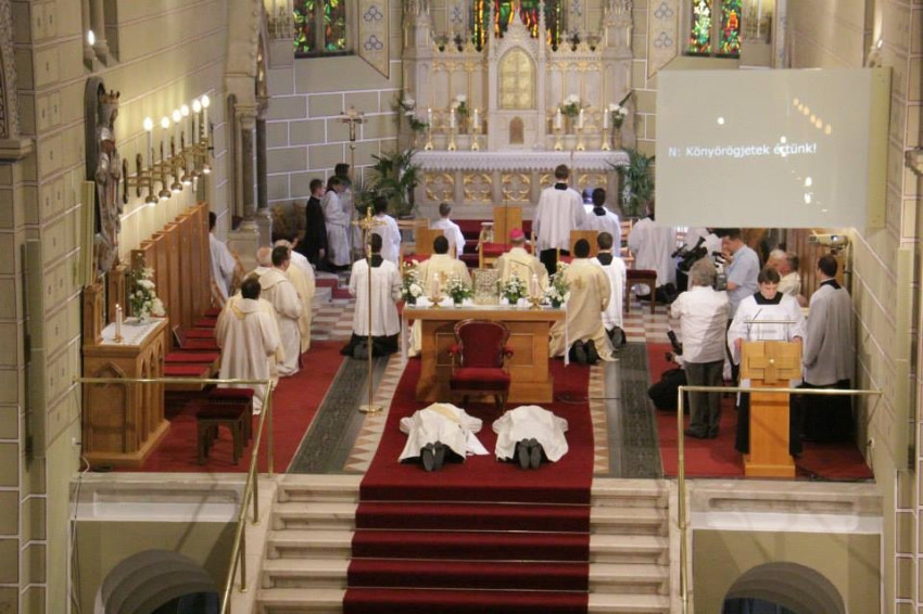 A homília után következett a jelöltek ígérete, majd a Mindenszentek litániája, mely alatt a szentelendők a földre borultak.