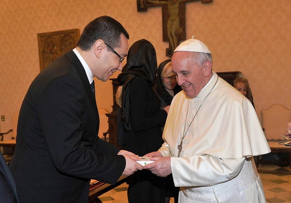 Ferenc pápa szombaton délelőtt audiencián fogadta a Vatikánban Victor Pontát. A román kormányfő ezt követően találkozott Pietro Parolin bíboros államtitkárral, valamint Dominique Mamberti érsekkel, az államközi kapcsolatok titkárával.