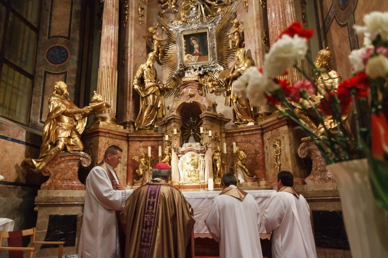 A szertartás végén a főpásztor a hívekkel együtt imádkozott a Könnyező Szűzanya kegyképénél és Boldog Apor Vilmos sírjánál.