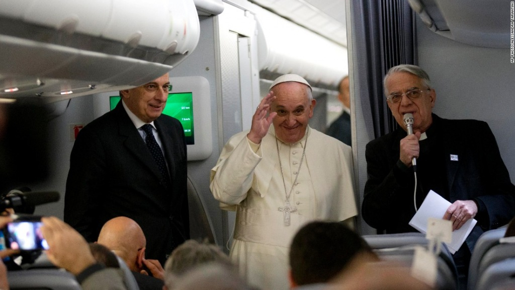Lombardi atya Ferenc pápához: Ezen a közbenső utazáson is, amint látja, készek vagyunk meghallgatni a szavait. Gratulálunk az utazás első részéhez, briliáns módon sikerült. Most néhány kérdést teszünk fel, miként immár az szokásos. Amikor Ön elfárad, és be akarná fejezni, kérjük, jelezze, és nyugodtan távozhat… Vagy már most fáradt? Mindenesetre, hogy elkezdjük… Tudom, Önnek egy dolog nagyon a szívén fekszik, amit szeretne most elmondani nekünk erről az útról, ez pedig Vaz Szent József szentté avatása. Arra kérem, hogy mindjárt az elején mondja el nekünk ezt a fontos üzenetet. Aztán továbblépünk a kérdésekhez. Többen már fel is iratkoztak. Íme, itt a lista!