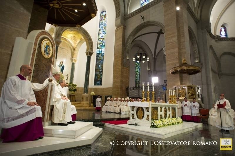 Ferenc pápa angol nyelvű homíliája rögtön az elején nagy sikert aratott: „Szeretsz-e engem?” – idézte a pápa Jézusnak Péterhez intézett kérdését, ami angol nyelven így is érthető: „Szerettek-e ti engem?” Az egész templom, püspökök, papok, szerzetesek egyhangúlag válaszoltak: „Igen!” Ferenc pápa megköszönte a lelkesedést, hozzáfűzve: „De én az Úr szavait olvasom, tehát az Úr mondja, kérdezi: Szeretsz-e engem? Legeltesd bárányaimat!” Minden lelkipásztori szolgálat, az Istennek szentelt élet minden formája ebből a szeretetből születik és ennek a jézusi szeretetnek a jele.