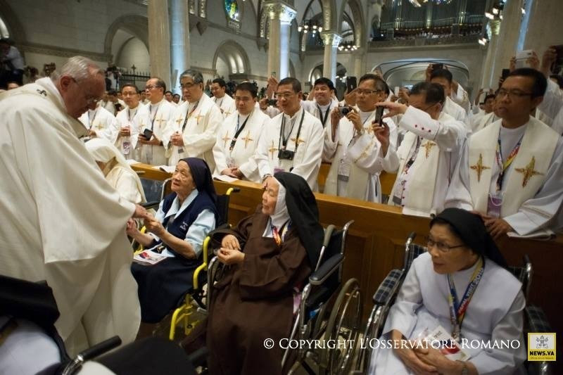 Ferenc pápa arra kérte a jelenlevőket, hogy vigyék haza az ő szeretetét az otthon maradt időseknek, betegeknek és kicsiknek. Miközben a Fülöp-szigetek az ország evangelizálásának ötszázadik évfordulójára készülődik, hálásan emlékezünk azokra a püspökökre, papokra és szerzetesekre, akik rátok hagyták ezt az örökséget. Ők nemcsak evangéliumot hirdettek és egyházat építettek, hanem a szeretet evangéliumi üzenete által ihletett társadalmat kovácsoltak a megbocsátás, a szolidaritás és a közjó érdekében végzett szolgálat jegyében.
