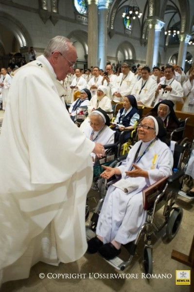 Ferenc pápa arra buzdította a fiatal papokat, a szeminaristákat, a szerzetesi és az Istennek szentelt élet többi fiatal képviselőjét, hogy osszák meg főként a kortársaikkal a Krisztus és egyháza iránti lelkesedésüket és örömüket. „Legyetek közöttük, bátorítsátok őket a szegénység, a korrupció és más nehézségek okozta elbátortalanodásukban.”
