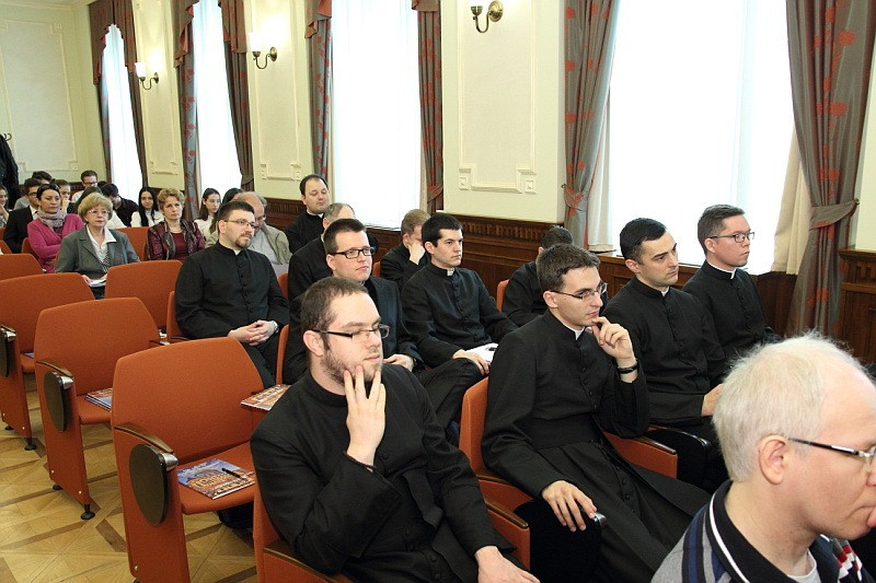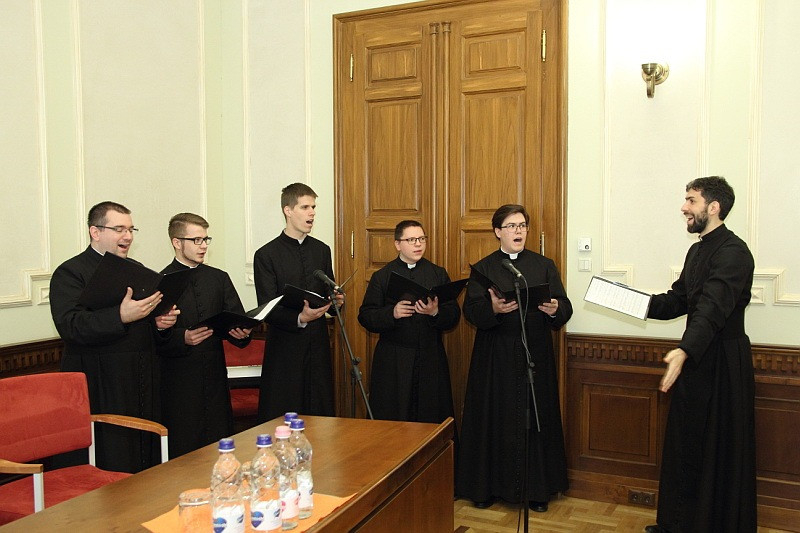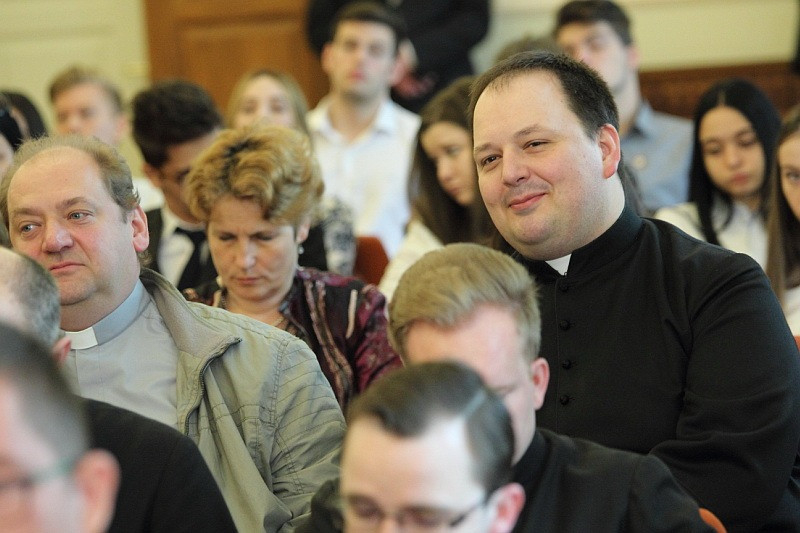 Molnár Antal levéltáros az esztergomi ősrégi szeminárium mindennapjait két számadáskönyv alapján ismertette. Frankó Tamás, a főiskola rektorhelyettese részletesen beszélt a Ratio Fundamentalis Institutionis Sacerdotalis dokumentumról, melynek főcíme nem véletlenül lett A papi hivatás ajándéka. Ferenc pápát idézve kiemelte, hogy a papi hivatásra készülő fiatal „egy csiszolatlan gyémánt, akit a papnevelés során úgy alakítanak, hogy ragyogni tudjon Isten népe előtt”.