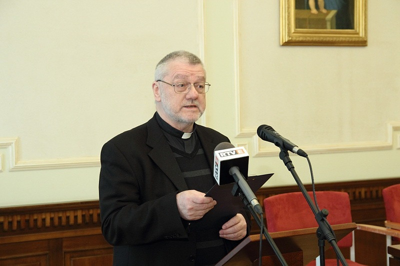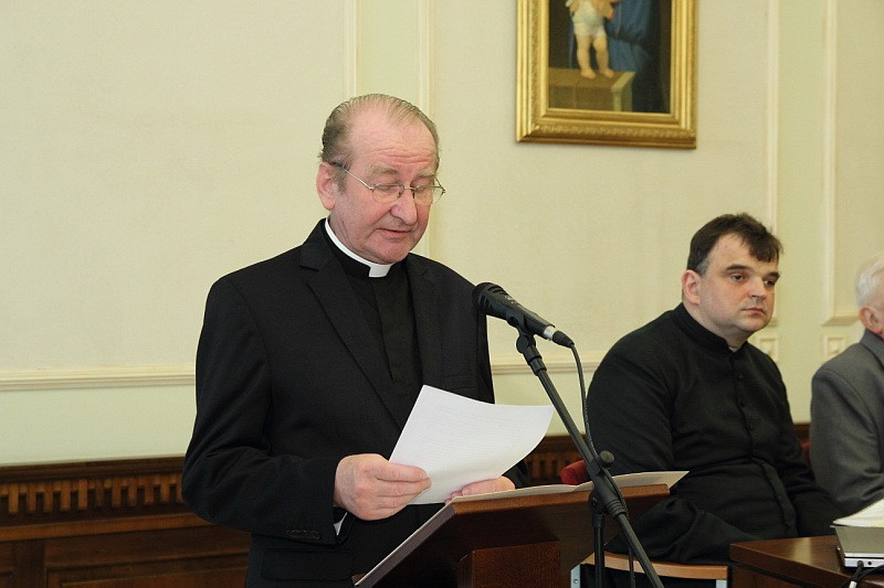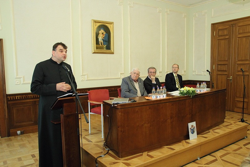 Harmai Gábor, az Esztergomi Hittudományi Főiskola tanára a szeminárium alapításának történeti keretét ismertette. Ahogyan fogalmazott, az 1567. április 23-án megnyílt intézményhez tizenhárom személy tartozott: két tanár, tíz növendék és egy szolga. Nagyon nehéz történelmi időszakban jött létre. Ahogyan arra az alapító okiratban is utal Oláh Miklós esztergomi érsek: helyszínéül a török veszély miatt esett a választás Nagyszombat városára. Oláh Miklós alapítása szervesen illeszkedett az Egyház tridenti zsinat által szorgalmazott átfogó reformjába. Az érsek személyéről Fazekas István történész elmondta, hogy a humanista főpásztor II. Ulászló apródjaként kezdte szolgálatát. Szathmáry György és Habsburg Mária titkára is volt. Oláh Miklós esztergomi érsekként megreformálta az egyházmegyét, iskolákat alapított, vizitációkat végzett és letelepítette a jezsuitákat.