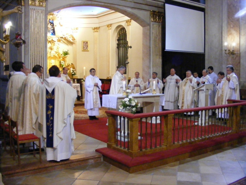 Április 19-én, szerdán este közösen mutattak be szentmisét a celldömölki Nagyboldogasszony-kegytemplomban. A szentmise elején Nagy László a helyi hívek és az egyházi tanácsadó testület nevében köszöntötte a papokat, majd a házigazda plébános vette át a szót, aki elmondta, hogy 1990-ben 64-en kezdték meg teológiai tanulmányaikat a gyulafehérvári szemináriumban. A közel negyven együtt végzett lelkipásztorban 16 éve fogalmazódott meg a gondolat, hogy minden évben húsvétot, az Egyház legnagyobb ünnepét követően találkozzanak. Az osztálytalálkozót minden évben más lelkipásztor szervezi. A Celldömölkre érkezett papok nagy része az ország másik felén vagy Erdélyben szolgál, így nem kis áldozatot jelentett számukra a részvétel. A közösen bemutatott szentmisében adtak hálát hivatásukért és az elmúlt több mint húsz évben kapott kegyelmekért.