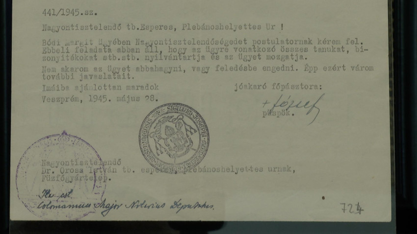A rekollekció résztvevői az évfordulóhoz kapcsolódó dokumentumokkal érkeztek. Ezek között volt az az 1945. május 28-án kelt levél is, amelyben Mindszenty József veszprémi megyéspüspökként posztulatornak felkéri Oross István fűzfőgyártelepi esperest, hogy a Bódi Mária Magdolna halálával kapcsolatos összes tanút, bizonyítékot kutassa fel, az ügyet mozgassa.