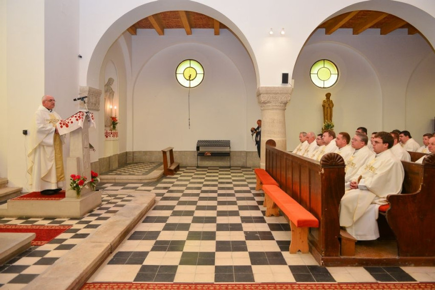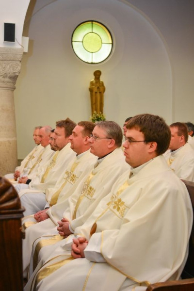 A szentmisét Udvardy György pécsi megyéspüspök mutatta be, a szentbeszédet és a szentmise utáni elmélkedést Varga László, a Kaposvári Egyházmegye általános helynöke tartotta, Eucharisztia és papság témában. A lelki program és továbbképzés litániával, majd ebéddel zárult.
