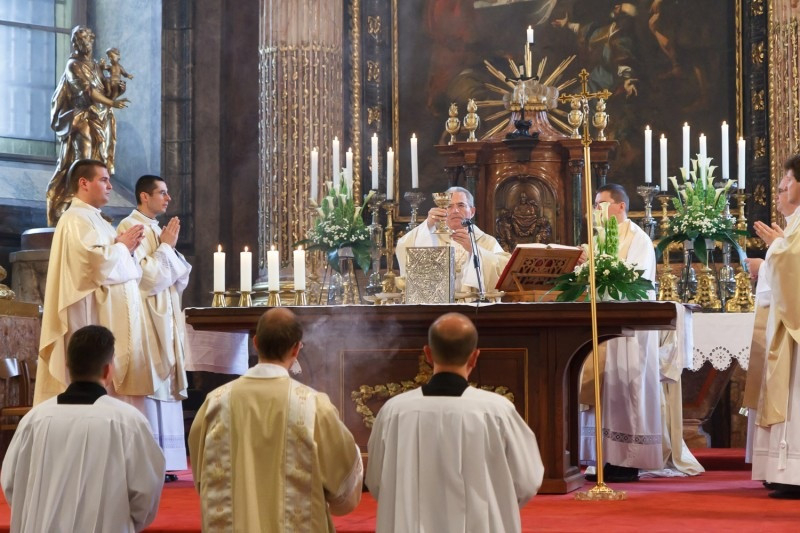 A liturgia áldozati részében az újonnan felszenteltek immár közösen koncelebráltak az összegyűlt papokkal.