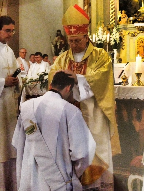 Vízi János, a római Pápai Magyar Intézet növendéke egy zsoltáridézetet választott papi jelmondatául: „Uram, én a te szolgád vagyok.” (Zsolt 116,16) A szentelő püspök ebből kiindulva a szolgálatról elmélkedett. A mai világban a szolgálat nem divatos magatartás, negatív képzetek társulnak hozzá: kiszolgálás, szolgalelkűség, kiszolgáltatottság. Ezzel szemben – mondta a püspök – a szolgálat az Egyházban Jézus követése, aki „nem azért jött, hogy neki szolgáljanak, hanem hogy ő szolgáljon, és életét adja mindenkiért” (Mt 20,28). A pap személyén keresztül Jézus újra kimondja az Atyának, hogy „Értük szentelem magam” (Jn 17,19).
