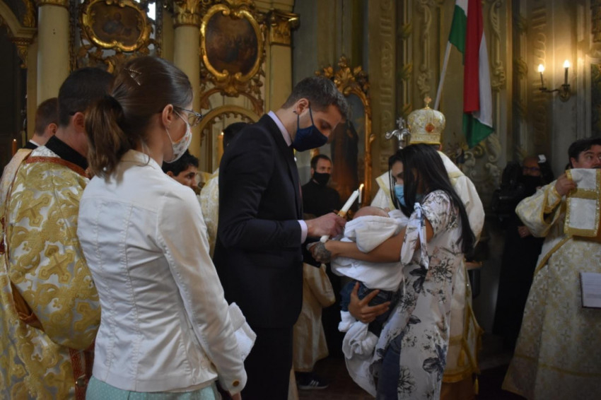 A Szent Liturgiában először a keresztelésre került sor: Kocsis Fülöp érsek-metropolita szolgáltatta ki a szentséget a Baranyi-Bozi házaspár első gyermekének.