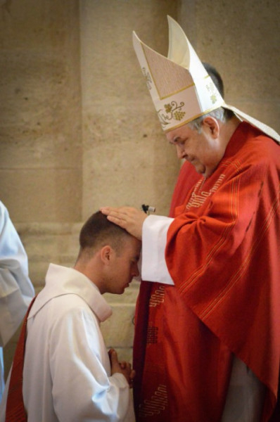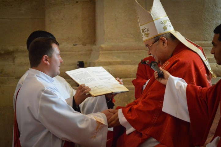 A homília után a jelöltek ünnepélyesen ígéretet tettek a papsággal járó kötelezettségek hű megtartására. A Mindenszentek litániája elimádkozása, majd a szentelés, a kézrátétel és a felszentelő ima következett.
